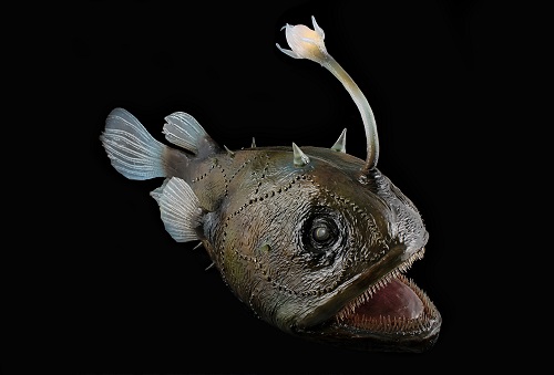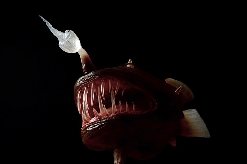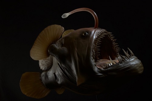 Wśród eksponatów znalazła się również Himantolophus paucifilosus - jedna z większych ryb głębinowych – jej wielkość dochodzi do 45 centymetrów. Jej charakterystyczną cechą są perełkowate wyrostki zwane neuromastem. Jest to narząd czuciowy, który wystaje nad skórę i pozwala rybie wyczuwać nawet najdrobniejsze poruszenie w otoczeniu. Himantolophus należy do grupy tzw.: „anglerfish” – czyli „ryb wędkarzy”. Za „wędkę” służy wyrastający z czubka głowy świecący wabik.