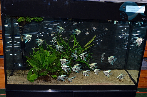 Akwarium wystawowe m.in. ze skalarami (firma Premium Fish)