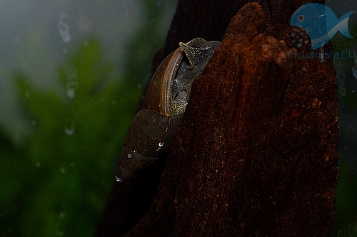 Muszlowiec Neolamprologus brevis schowany w swojej muszli (ślimaka winniczka)