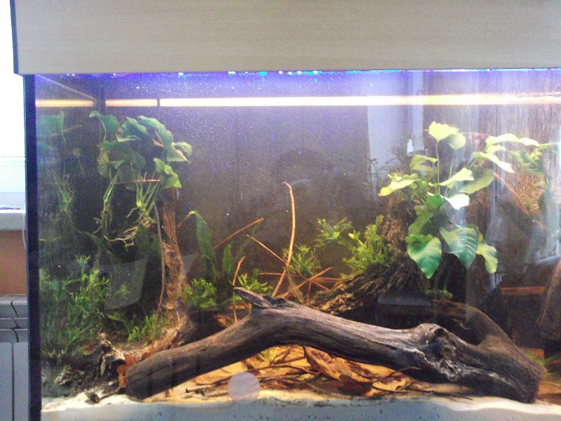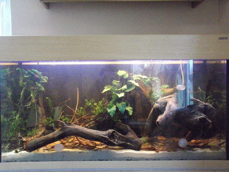 Akwarium założyłem w fundacji dla niepełnosprawnych do której chodzę. Dotychczas posiadaliśmy w niej akwarium 112 litrów bez osprzętu. Niestety fundacja nie posiadała finansów na niezbędne wyposażenie, więc postanowiłem sam podziałać w tej kwestii. Odezwałem się do wydawnictwa Pet Publications o pomoc, Ci przekazali moją prośbę do firmy Aquael. To co się wydarzyło potem jest dla mnie czymś niesamowitym. Bardzo wiele osób chciało pomóc, mnie niepełnosprawnemu i fundacji. I tak prosiłem o osprzęt do 112 litrów, a dostaliśmy cały zestaw Aludecor 200 litrów. Podziękowałem całej redakcji wierszem mojego autorstwa, co zaowocowało artykułem o mnie w prasie akwarystycznej. Kolejną pomoc obiecała firma Zoolek, którą poprosiłem o podstawowe testy kropelkowe na parametry wody, które od niej otrzymaliśmy. W lokalnym sklepie dostaliśmy zniżkę na korzenie i ryby, a rośliny otrzymaliśmy w gratisie. Bardzo mnie to podbudowało, że tyle osób zechciało pomóc. Zbiornik pomogło założyć forum o pielęgniczkach, jest to biotop Amazonki. Cieszę się, że w końcu się udało i spełniłem jedno z moich marzeń. Na zdjęciach w artykule widać efekty mojej pracy. Akwarium zostało zalane 9 lutego 2016. Do wody wlałem uzdatniacz i bakterie otrzymane od firmy Aquael.