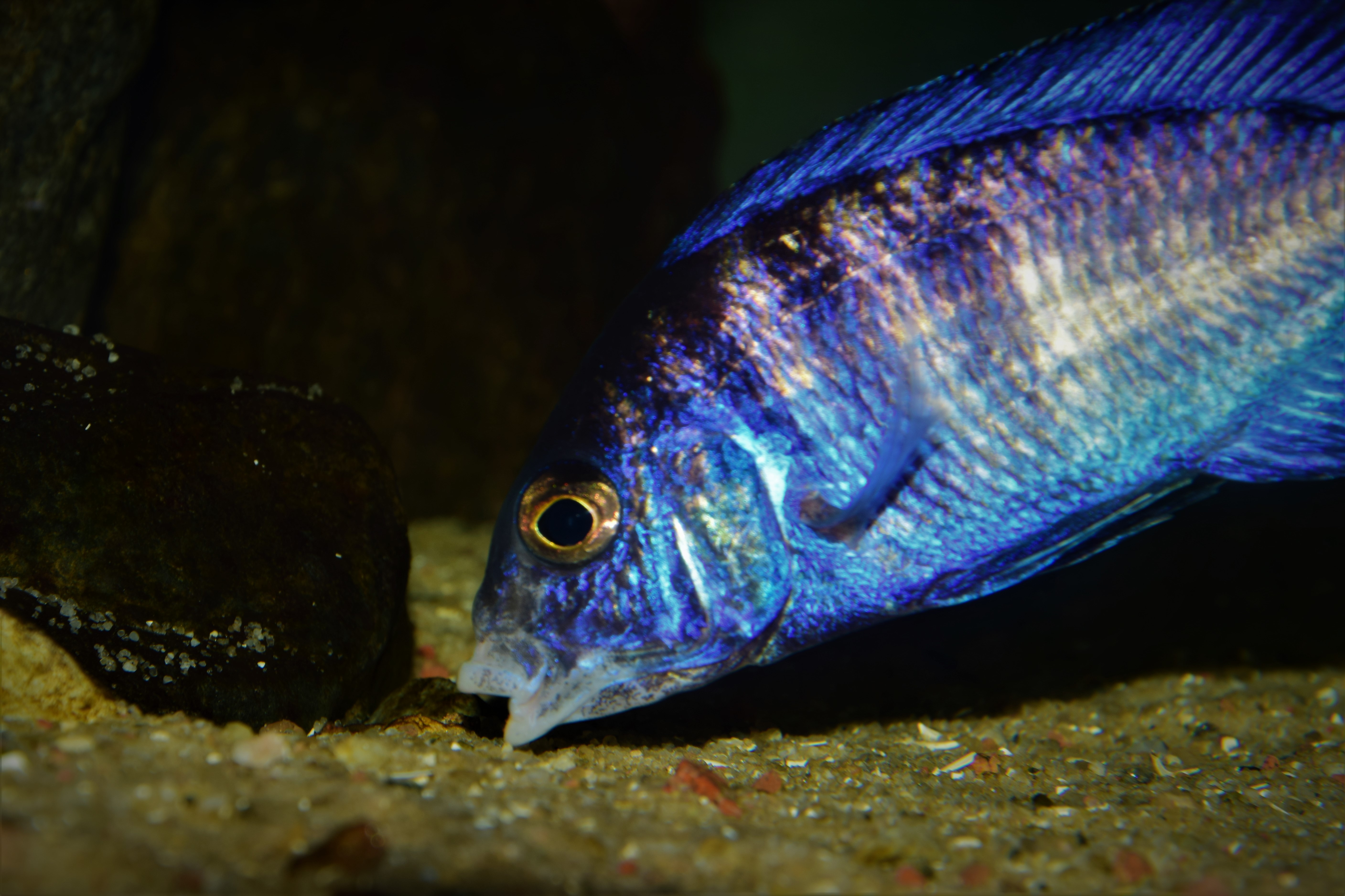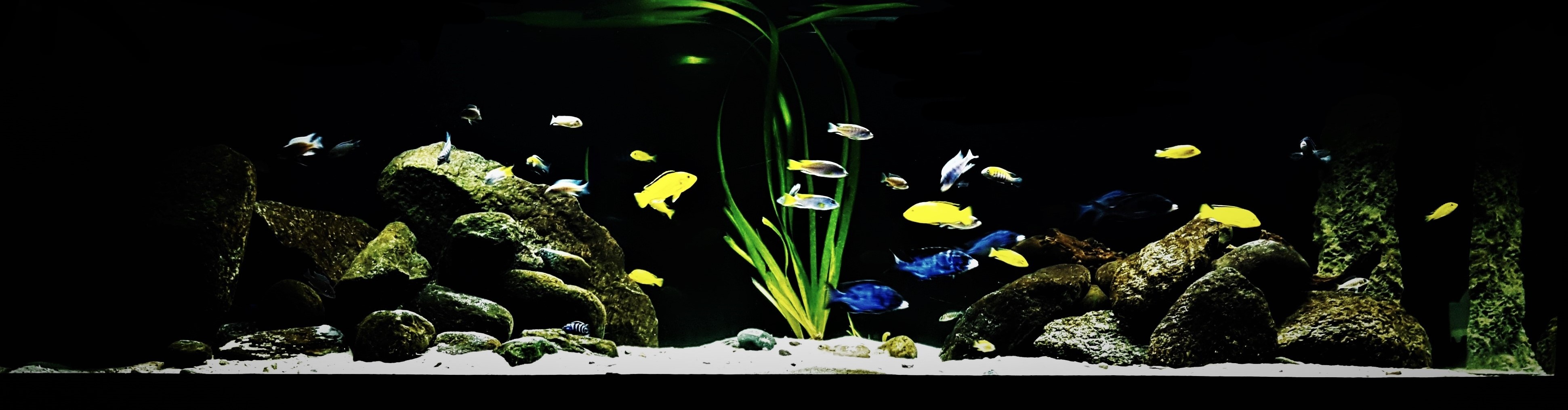 Akwarium jest stosunkowo młode i ma 7 miesięcy. Ryby oczywiście też młode, przez co większość z nich dopiero za jakiś czas pokaże swoje największe piękno. Niemniej jednak jest to cudowny biotop, w którym zachwyca ogromna różnorodność barwnych ryb wśród surowego klimatu piachu i skał.